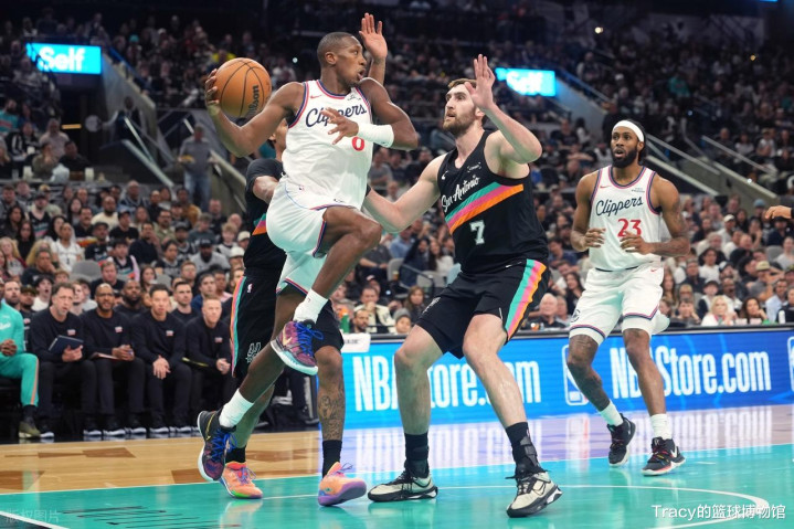 第二节双方轮换阵容阶段,小卡回来带队,快船中锋杰克逊非常活跃,小卡抢断科内特反击一条龙暴扣,39-30打停马刺。回到比赛,两队展开拉锯战,比分交替上升,但快船这边一直保持着领先优势。并且逐渐拉开分差,半场结束之前桑德斯三分再中,快船66-46领先20分。